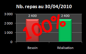 Objectif atteint le 30 avril 2010, notamment grâce à l’opération « Bol de pâtes ».