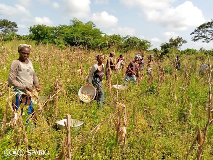 Il y a quelques jours, c’était un travail communautaire au champ pour récolter du maïs qui avait été semé et dont une partie a été saccagée par les chèvres du voisin, mais aussi pour entretenir et désherber le champ des haricots et des arachides.